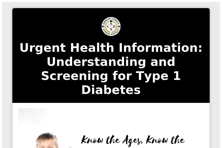 Urgent Health Information: Understanding and Screening for Type 1 Diabetes Dear Parents and Guardians, We are sharing important health information regardi. . .